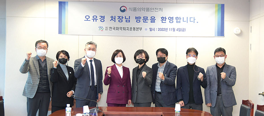 오유경 식품의약품안전처장이 지난 11월 4일 한국마약퇴치운동본부(이사장 김필여)를 방문하여 마약류퇴치사업의 추진현황을 점검하고 마퇴본부의 발전방안에 대해 논의했다.